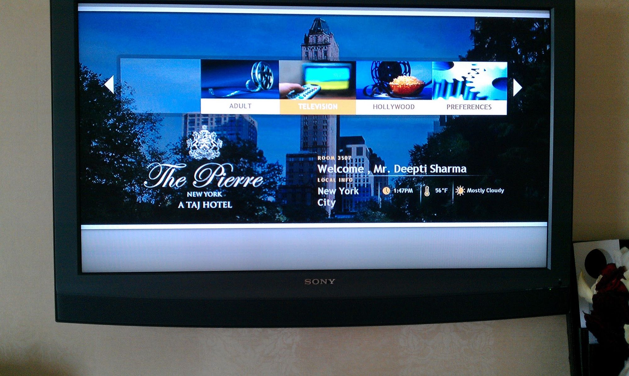 Our first night as a married couple. The name on the TV just symbolized how I felt - that you would be the primary character in our story together, and I would support you and love you until the end of time.
